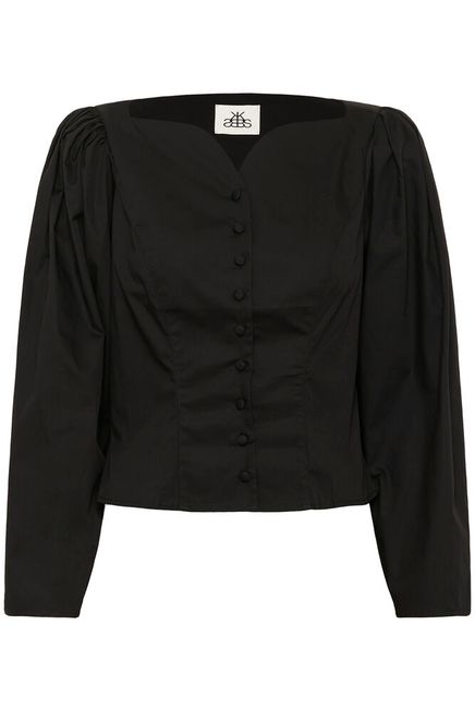 En fin svart blus med knappar framtill, och långa ärmar. denna blus är även figursydd.