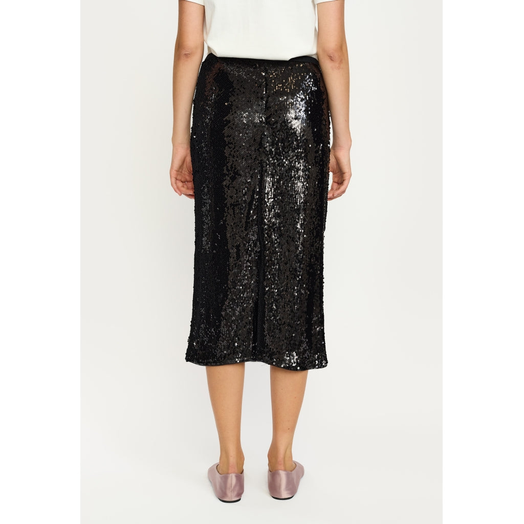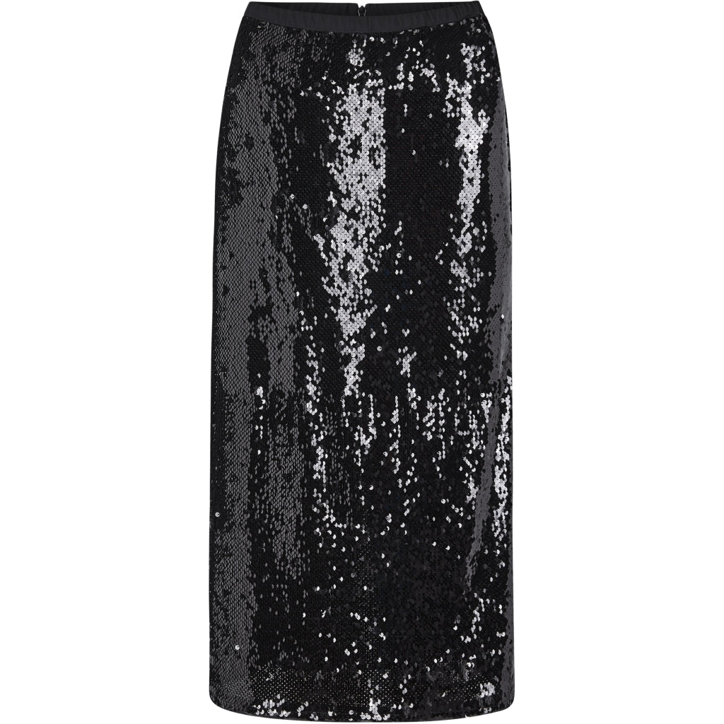 En snygg svart ankel lång kjol med paljetter. En rak modell, slits baktill, resår i midjan och dragkedja. Snyggt till både en stickad tröja eller en festlig blus. Kjolen finns både i svart och brunt.