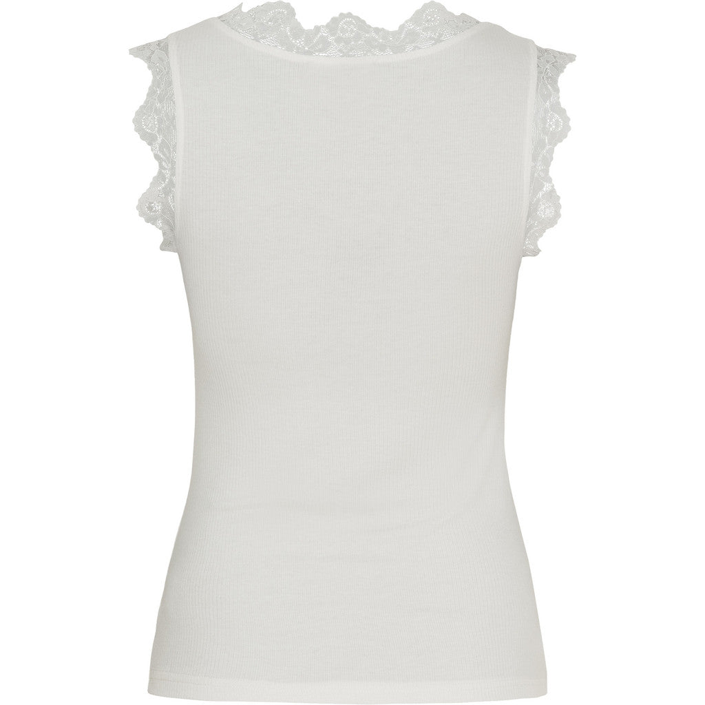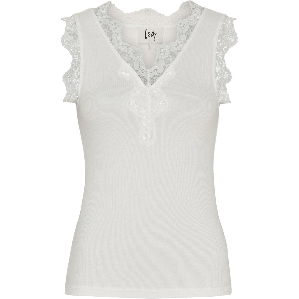 Ett fint vitt linne med spets detaljer på ärmen samt vid hals ringningen. Toppen har en V-hals samt har ett reflat material. Den är något figur nära.