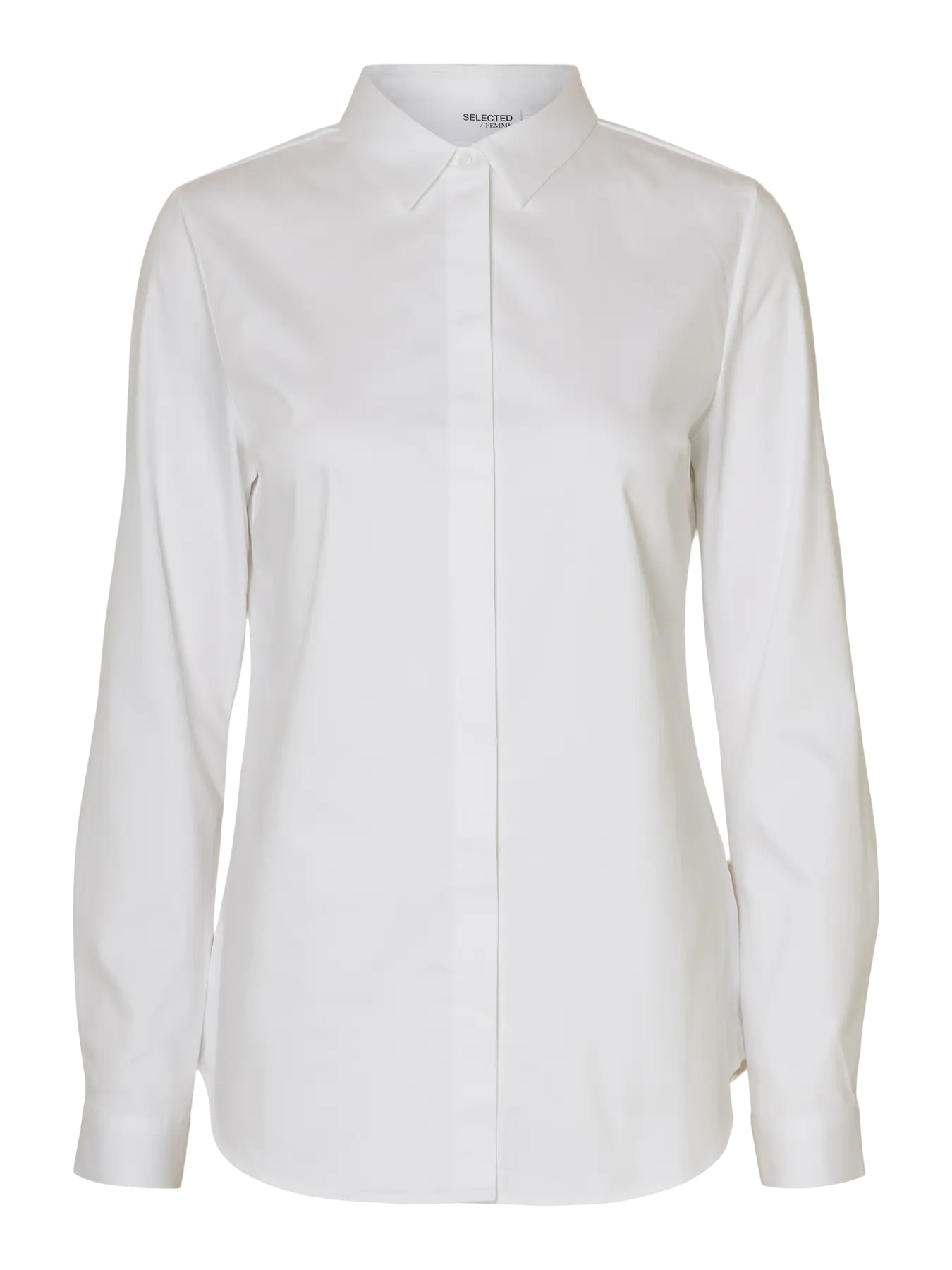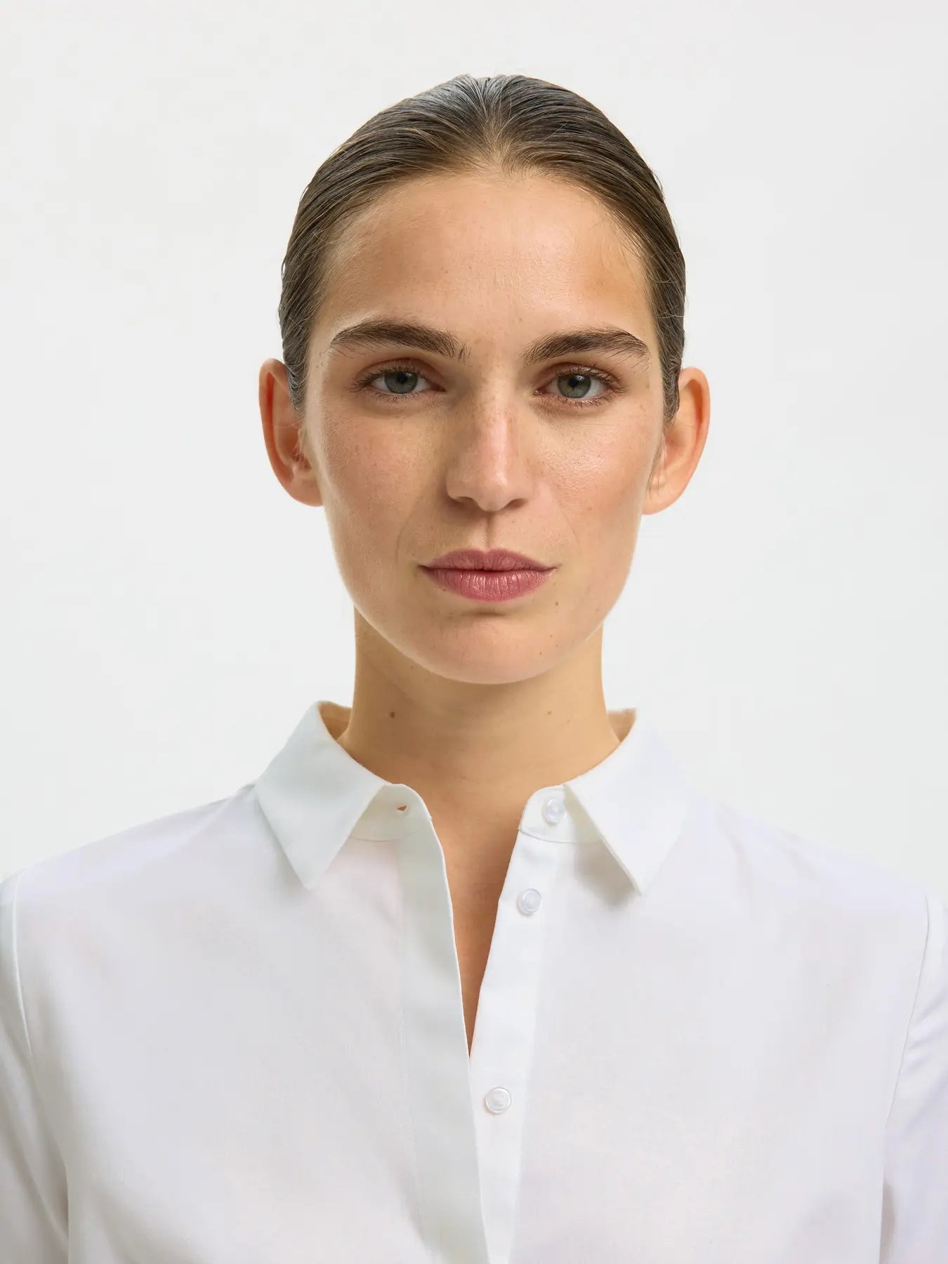 En fin vit skjorta som är figur sydd. Skjortans ärmar går in lite på arm slutet.