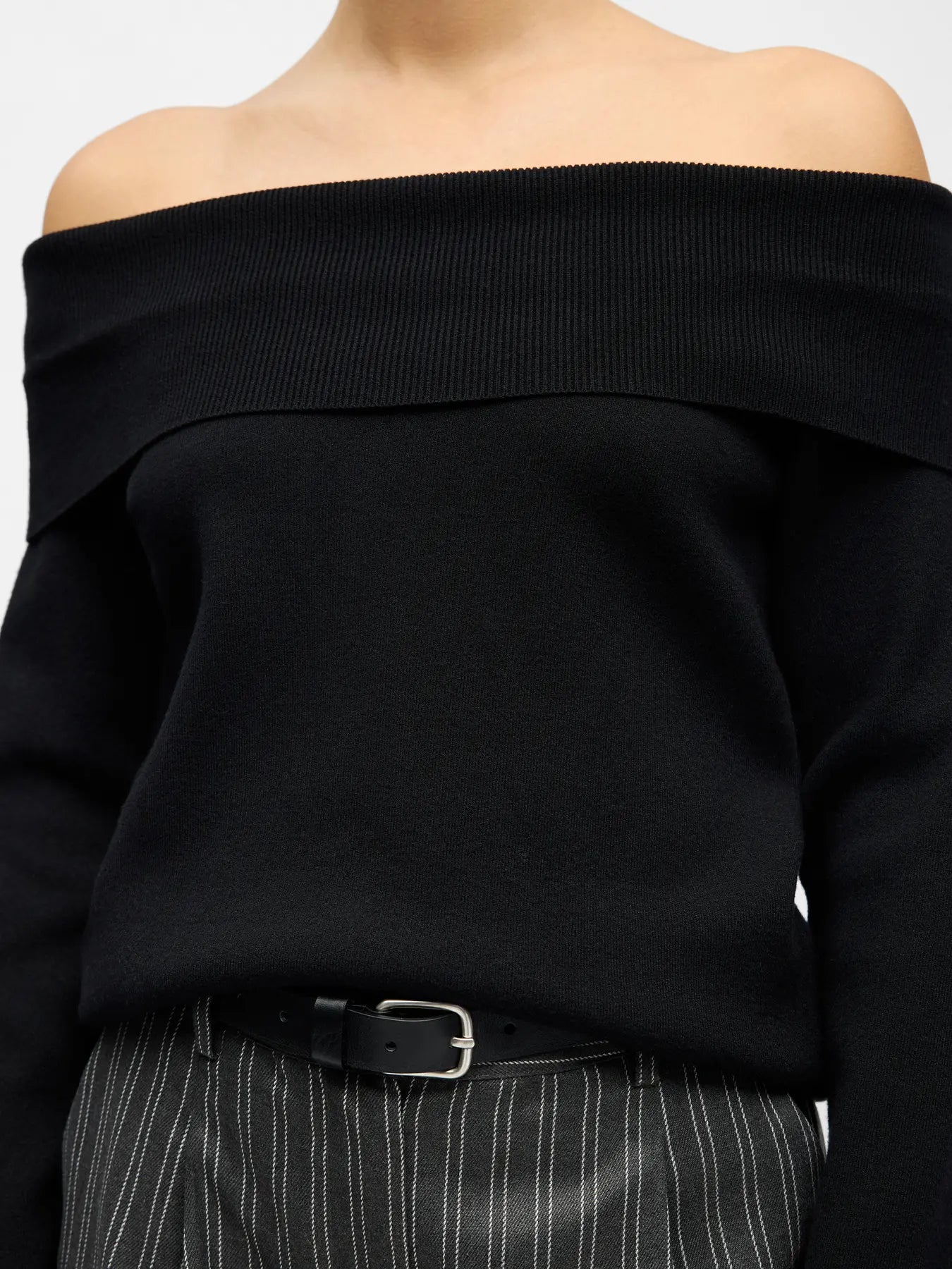 En sngg svart tröja med off shoulder detalj. Tröjan har en lös passform, långa ärmar och en ribbad off shoulder detalj upptill.