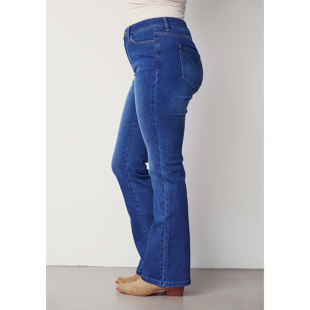 Carpi Flare Jeans kombinerar en tidlös denimlook med en smickrande utsvängd passform. De sitter åt runt höfterna och låren med extra vidd från knät, vilket skapar en elegant och feminin siluett. Med fyra klassiska fickor och en mellanhög midja har jeansen en mångsidig look som fungerar både för vardag och mer festliga tillfällen. Den mjuka bomullsblandningen med stretch säkerställer bekvämlighet och rörelsefrihet hela dagen.